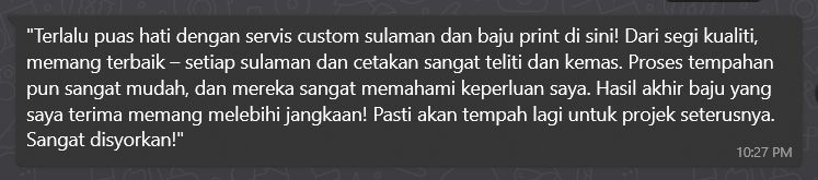Kami print design anda mengikut pilihan anda. Sublimation, DTF, DTG atau Heat Press. Selain printing ke atas pakaian korporat, anda juga bole memilih pelbagai jenis corak design untuk cenderahati-cenderahati bagi acara-acara tertentu. Melalui printing design-design ini anda boleh menjadikannya sebagai marketing strategy, memperkenalkan Company branding anda ataupun sebagai kempen-kempen program tahunan Syarikat anda.